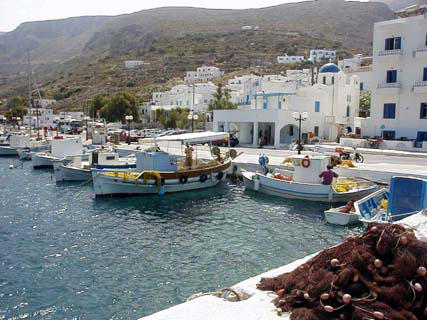 sein des Cyclades et possède deux ports naturels, Katapola et Aigiali. Les habitants vivent