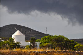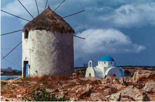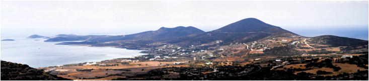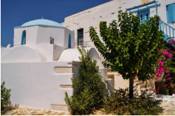 Antiparos, à l'Ouest de Paros, d'une superficie de 34 km2 est une île d'origine volcanique. Le plus haut sommet de l'île est le Profitis Ilias (399 m). Elle possède de magnifiques plages de sable aux eaux turquoises. Un endroit pour des vacances idéales au calme.