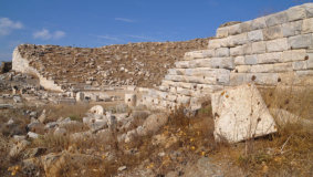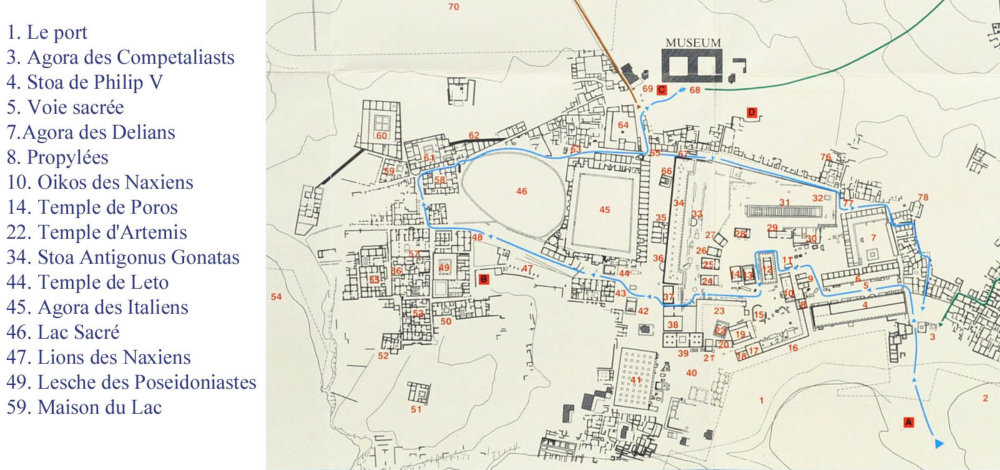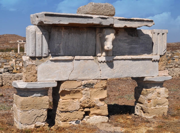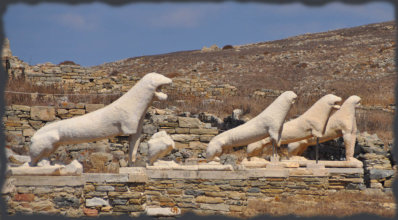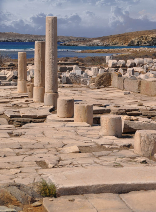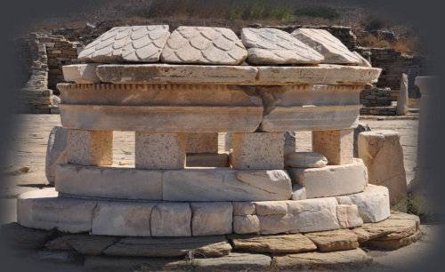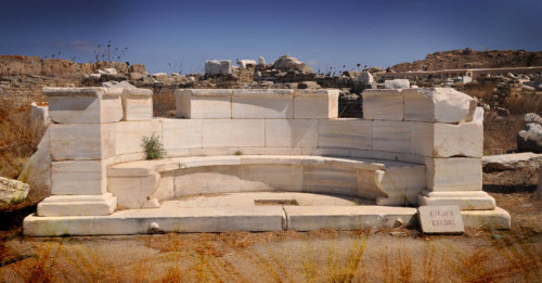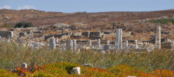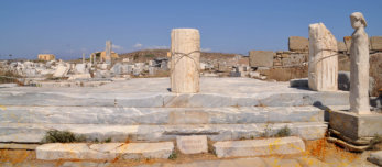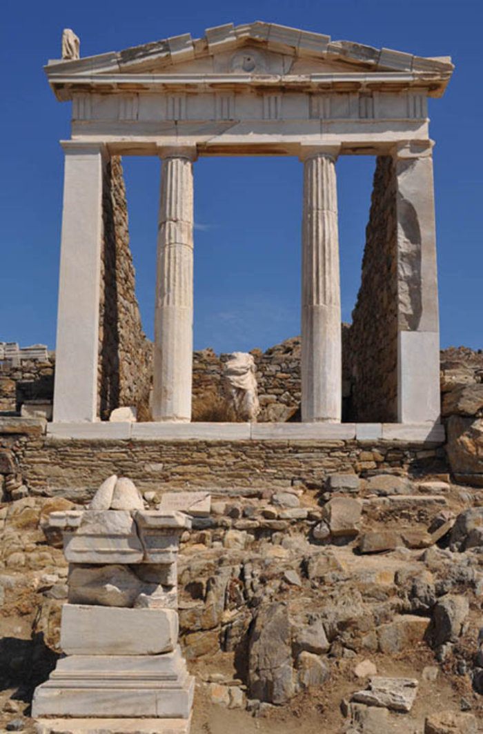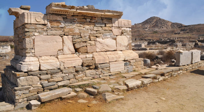 Temple de Poros et à l’arrière le Mont Kynthos dont la