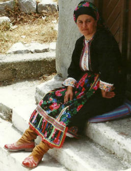 d'un grand foulard coloré et brodé. Les chaussures