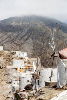 ruelles étroites. Face à la mer, sur la crête, plusieurs moulins qui défient le