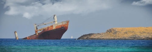 Diakofti - C'est ici qu'accostera votre bateau - ici l'épave d'un bateau russe
