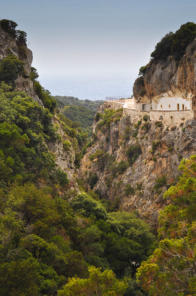 A gauche le monastère de Panagia Orfani (vierge orpheline)