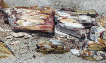 La forêt pétrifiée : ces arbres appartenant à la classe des conifères, notamment celle du Séquoia, pouvaient atteindre 150 m de hautIls furent recouverts par des matières volcaniques au milieu desquelles circulaient des eaux brûlantes riches en dioxyde de silicium. La matière organique s’est modifiée en différentes formes de silicium et surtout en opale. Avec l’érosion du sol, les troncs refirent surface. On évalue l’âge de ces arbres entre 5 à 10 millions d’années. C’est un phénomène très rare et d’intérêt mondial