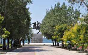 Sur le front de mer : la statue