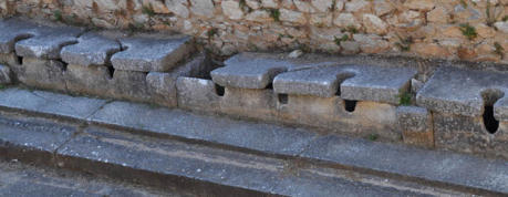 Les latrines publiques, avec écoulement des eaux, très bien conservées