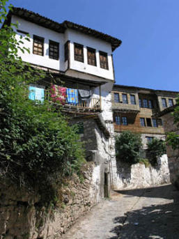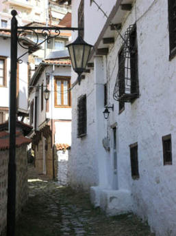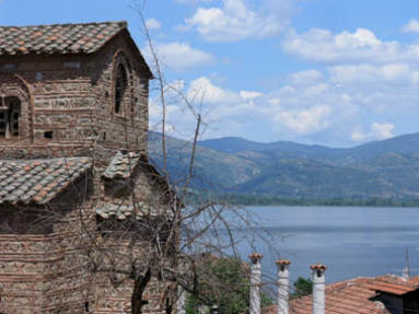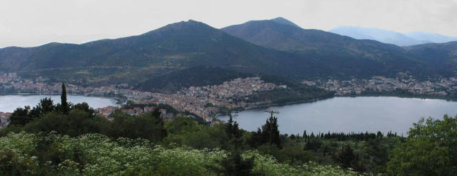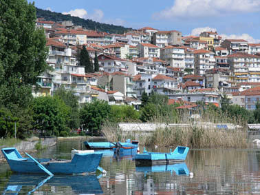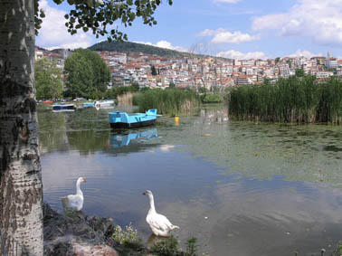 Pélicans blancs installés au bord du lac de Kastoria. Ce lac était habité par des castors (d'où le nom de la ville)