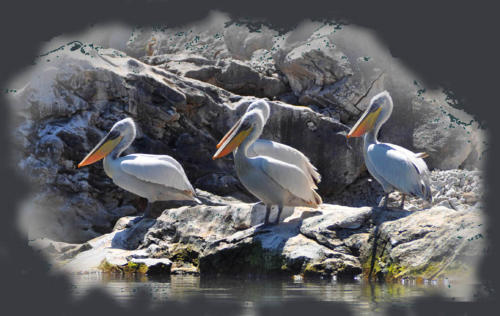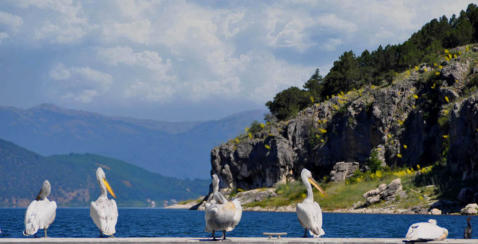 Le Pélican et le Pélican frisé (Pelecanus crispus) est la plus grande espèce d'oiseaux pouvant voler. Il peut atteindre un poids de 11 kg et une envergure de 3,20 m. C’est un oiseau qui se nourrit de poissons, mais n’entre pas en compétition avec les pêcheurs, car sa nourriture se compose principalement de poissons qui ont peu de valeur commerciale. La colonie de Prespa compte 10% de la population mondiale de l'espèce.