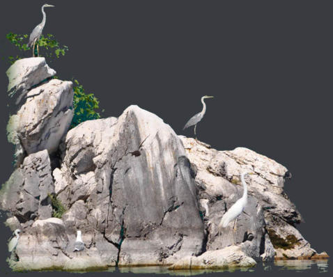 Quelle belle atmosphère règne dans ce lieu ! Un paradis ! Des rochers blancs et gris bordent le lac ainsi que de minuscules plages aux galets blancs, les oiseaux vous regardent passer... Ici un vol de canards, là-bas l’aigrette surveille l’horizon.....