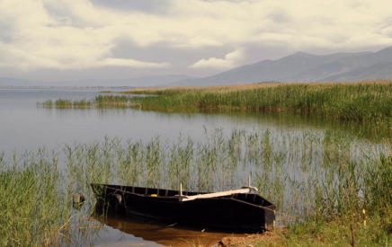 Mikri Prespa (petit lac) partagé entre la Grèce et l’Albanie, est entouré de roseaux, endroit idéal pour observer les oiseaux