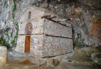 Hermitage Panaghia Eleoussa - 15e s. - avec d’impressionnantes peintures murales encore en bon état. En faisant le tour du lac, admirez les nombreuses peintures sur les rochers et les cellules monastiques de Psarradon