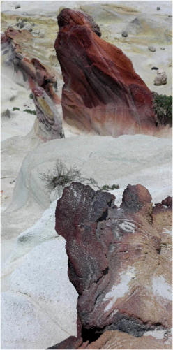 Formation volcanique blanche, roches étranges, espace hors du