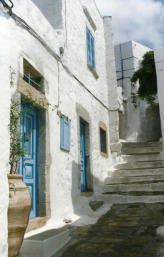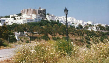 Entre Skala et Chora, à l’ombre du grand monastère, se