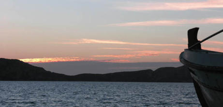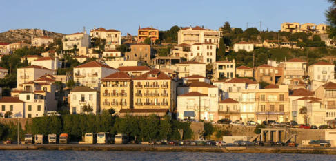 Un port en forme de fer à cheval face à l’île de Sfaktiria, c’est une de