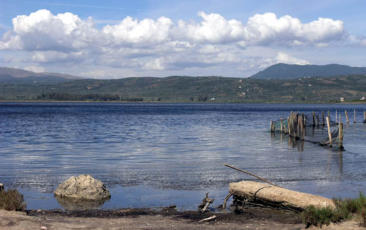 La plage sablonneuse de Voïdakilia sépare la lagune aux eaux saumâtres, de