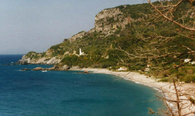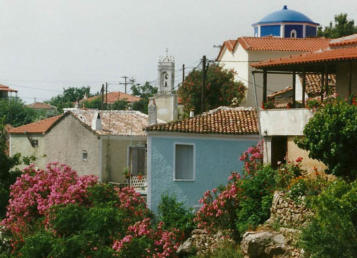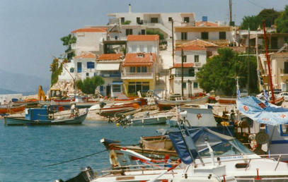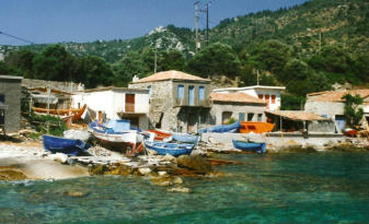 caïques. Pas loin de là, le village et la plage