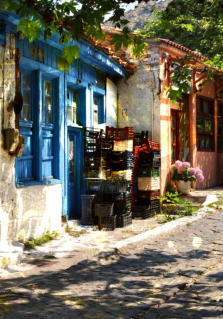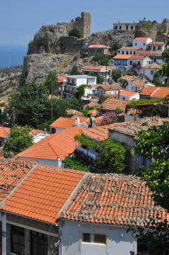 Construite en amphithéâtre à flanc de montagne, la cité de Chora, à 6 km du port, est très pittoresque avec ses petites maisons aux toits couverts de tuiles, ses rues tortueuses...