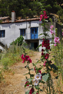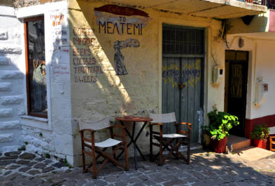 Chora est lovée, à l’intérieur des terres, parmi les pentes du Mont Saos. Les ruines du kastro dominent le village