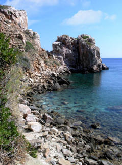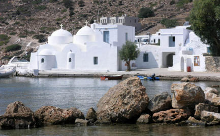 Sur un rocher se dresse le monastère de Panaghia Chrissopigi (XVIIe siècle)