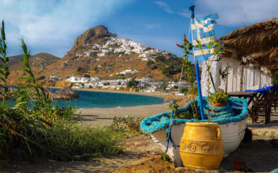 Skyros est située à l’Est des Sporades. D’une superficie de 209 km2, son littoral s’étend