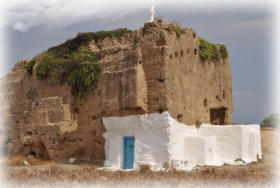 en forme d’escaliers. Ci-contre, l’église troglodyte -