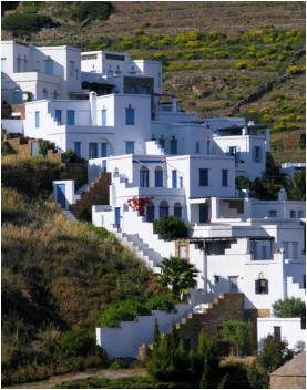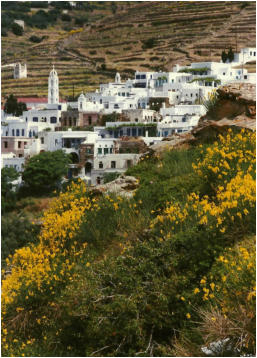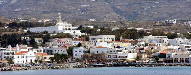 Tinos, la miraculeuse, l'île de la Vierge, de l'art et de la beauté, avec ses 750 églises catholiques et orthodoxes. Elle se situe entre Andros et Mykonos. Plus de 60 villages à visiter. Sa superficie : 197 km 2..  Une île pour les amoureux de calme et de nature
