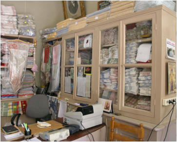 rue Evangelistria, un magasin expose les ouvrages réalisés par les étudiants de l’Ecole des Textiles