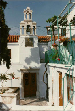 L'église de la Panaghia Evanghélistria (Vierge de l'Annonciation) dont le pèlerinage a lieu le 15 août, fut réalisée grâce aux dons de personnes riches et pauvres