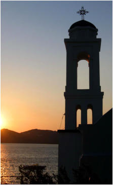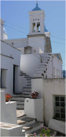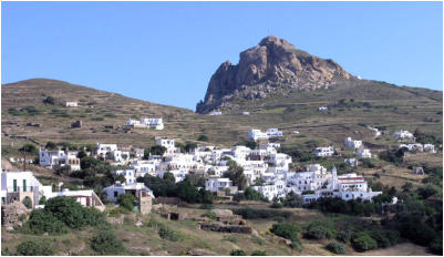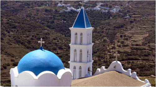 Le village de Skalados et son église sur promontoire