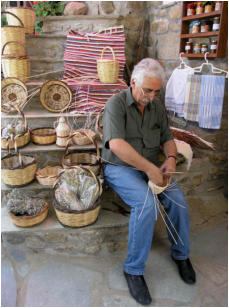 Le vannier de Volax. Différents produits locaux dans sa boutique. Un musée local se trouve à côté de l’église
